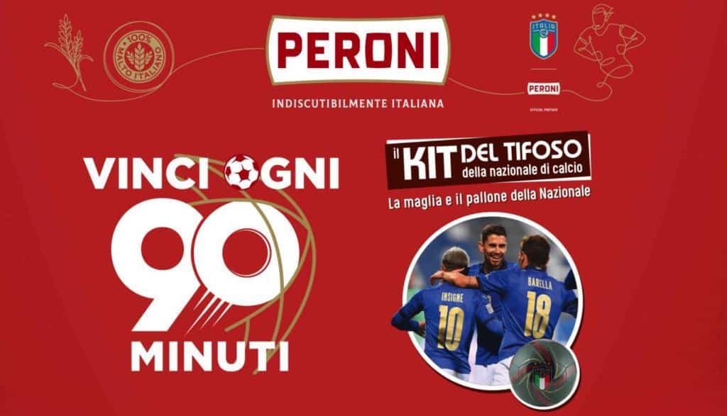 Fino all’11 luglio 2021 partecipa al concorso Peroni denominato “Se ci unisce è Peroni” e prova a vincere la maglia della Nazionale italiana di Calcio “Home Replica”, del valore di 90€ iva inclusa + il pallone da calcio Italia, del valore di € 20 iva inclusa.