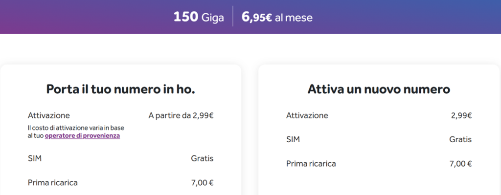 Promo ho. 6,95€ – 150 Giga a meno di 7 euro al mese